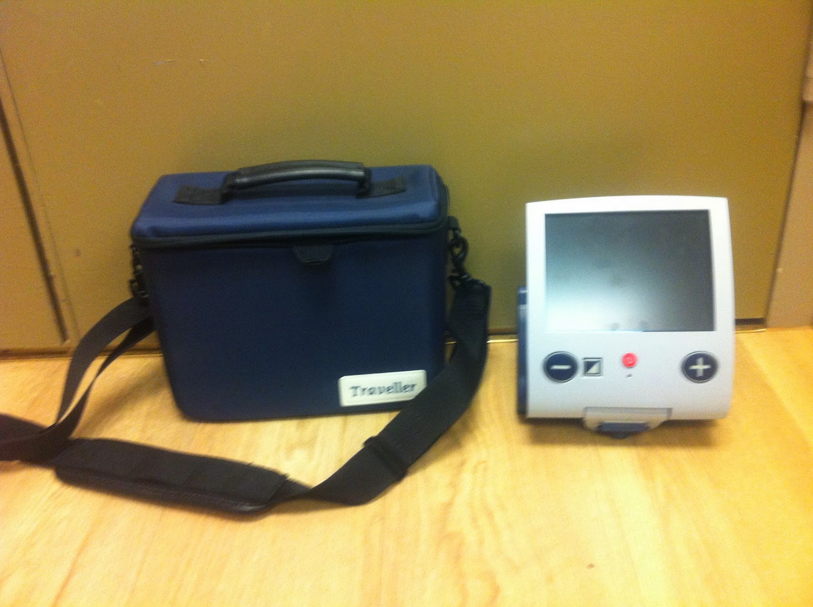 If you are in need of a handheld electronic magnifier but are finding money a little tight this may be just the thing for you. We have an ex-demonstrator Optelec Traveller, a great portable CCTV with full color and enhanced color modes, continuous magnification and a tiltable screen which can be adjusted to the perfect angle for you. This portable can run on the battery for around 2 hours or be powered with the included power adapter. It even comes with a case! And the best thing – it is only $199 (previously $1449)!
